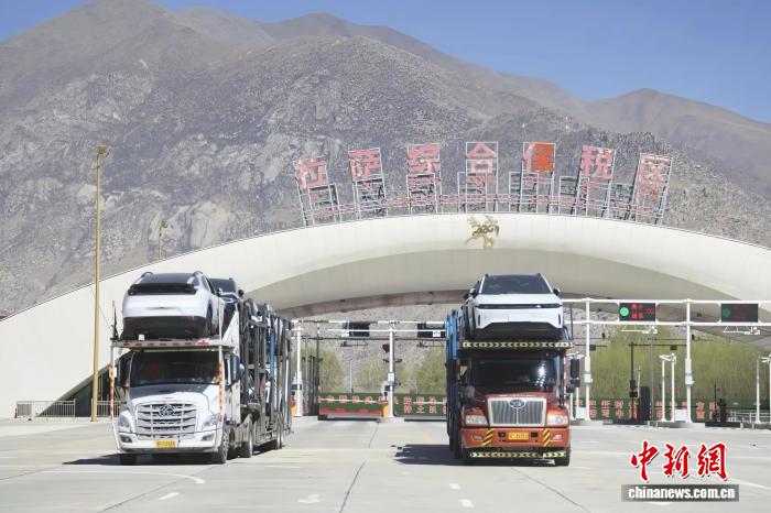 圖為拉薩綜合保稅區(qū)貨車滿載而出。拉薩海關 供圖