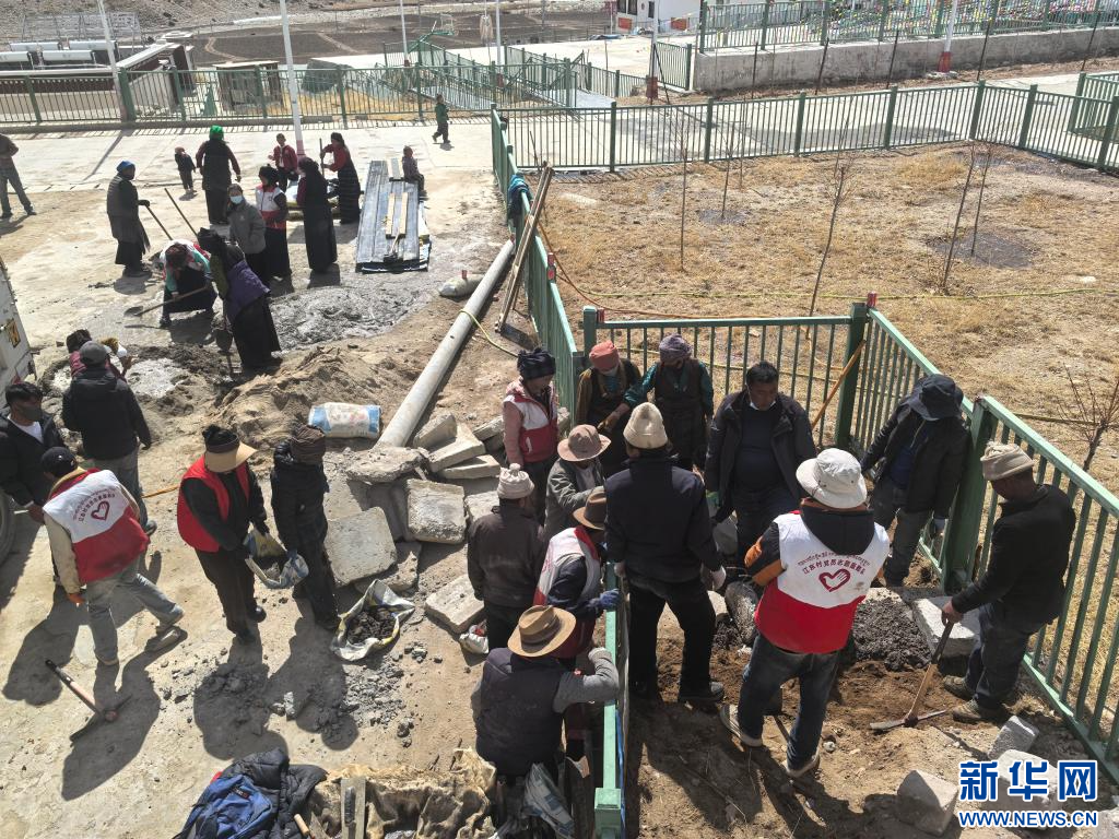 第十四批西藏自治區(qū)教育廳駐聶拉木縣聶拉木鎮(zhèn)江東村工作隊與當地群眾一起修筑村內小路。(受訪者供圖)