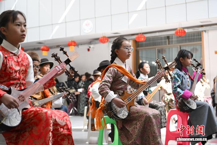 圖為結(jié)業(yè)典禮上少兒揚琴班進(jìn)行表演。貢嘎來松 攝