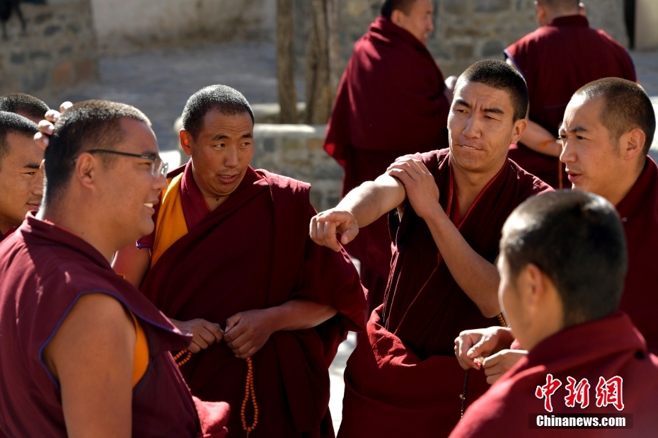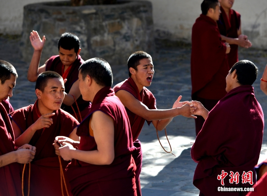12月4日,扎什倫布寺僧人辯經。中新社記者 李林 攝