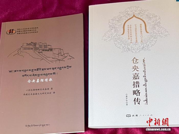 圖為西藏倉(cāng)央嘉措文化研究協(xié)會(huì)翻譯及出版的倉(cāng)央嘉措相關(guān)作品。(西藏倉(cāng)央嘉措文化研究協(xié)會(huì)供圖)