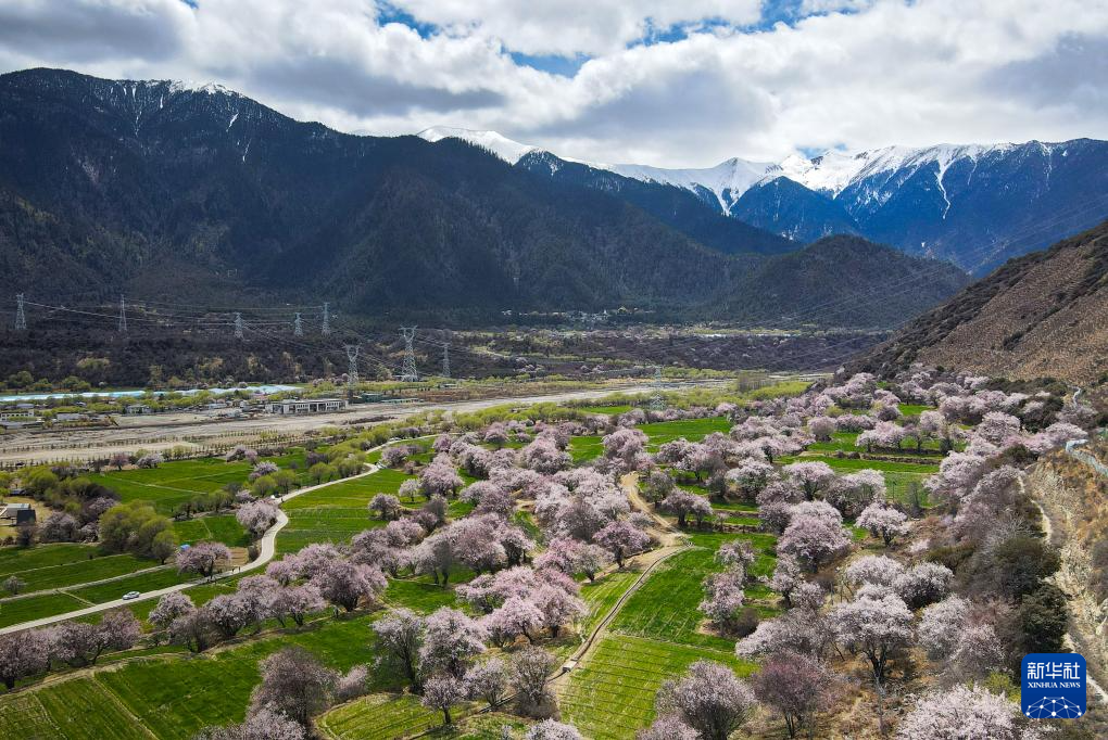 林芝市巴宜區(qū)朵當(dāng)村盛開的桃花(3月30日攝,無(wú)人機(jī)照片)。新華社記者 丁增尼達(dá) 攝