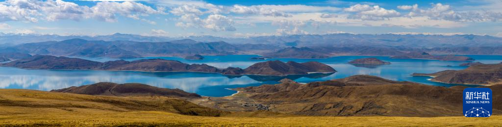 從喀慶拉山上俯瞰羊卓雍錯(cuò)(拼接照片,4月5日攝)。新華社記者 姜帆 攝