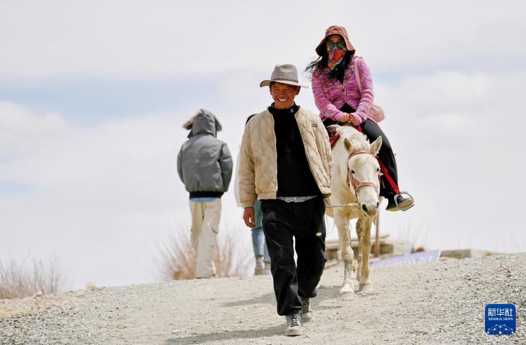 羊卓雍錯(cuò)北岸的村民為游客提供騎馬服務(wù)(4月5日攝)。新華社記者 張汝鋒 攝