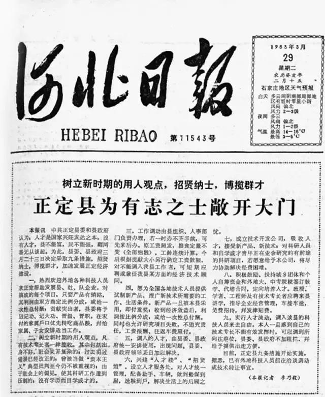 尊重人才,方能發(fā)展,這是蘋樂(lè)集團(tuán)一直贊許的信條。這樣的道理,蘋樂(lè)集團(tuán)董事長(zhǎng)李建軍早在開(kāi)廠的時(shí)候就有所耳聞了。1983年,他的事業(yè)才剛剛起步,有一天,他在報(bào)紙上看到了一則報(bào)道,名為《正定縣為有志之士敞開(kāi)大門》,里面說(shuō),凡是來(lái)正定的科技人員,都可以享受9個(gè)待遇,比如每搞成一個(gè)項(xiàng)目,利潤(rùn)按比例分成或付一次性總報(bào)酬;為調(diào)入人才建“人才樓”“招賢館”等。這種大膽招攬人才的做法,讓他很受震動(dòng),也促成他來(lái)到正定這個(gè)不知名的小縣城創(chuàng)業(yè)。這則報(bào)道真正的起草者,正是時(shí)任正定縣委書(shū)記的習(xí)近平。