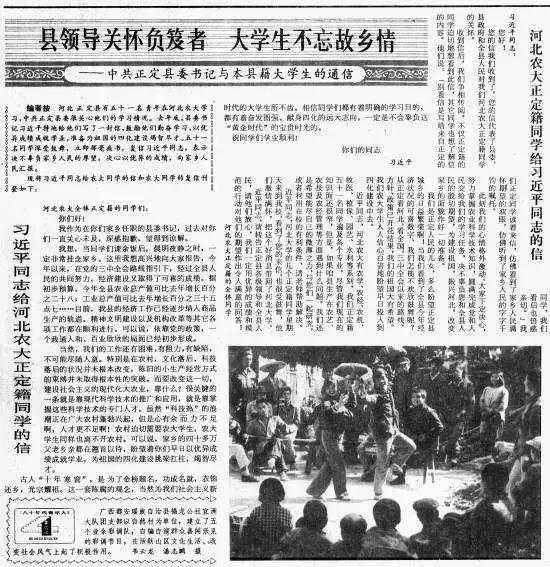 中國(guó)青年報(bào)刊登《習(xí)近平同志給河北農(nóng)大正定籍同學(xué)的信》