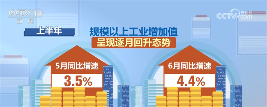 數(shù)據(jù)二:增長3.8%。工業(yè)和信息化部7月19日介紹,隨著3月份以來一批穩(wěn)經(jīng)濟政策效果持續(xù)顯現(xiàn),今年上半年,我國規(guī)模以上工業(yè)增加值同比增長3.8%,工業(yè)經(jīng)濟恢復(fù)向好。其中,5月、6月當月同比增速分別為3.5%、4.4%,呈現(xiàn)逐月回升態(tài)勢。工業(yè)投資保持擴張,上半年同比增長8.9%,增速較一季度加快0.3個百分點。