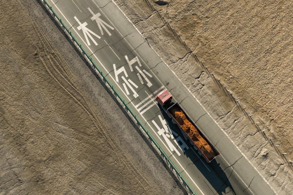 “經(jīng)過改建,如今的鹽橋已經(jīng)與普通柏油路沒有區(qū)別。”青海省公路局格爾木公路段段長(zhǎng)賈國(guó)平拿著石碑下方干裂翹起的一片鹽蓋說(shuō),路的最下方就是它。這條路從上到下依次是鋪筑的瀝青混凝土面層、水泥穩(wěn)定基層、砂礫層和天然鹽蓋。鹽蓋下方就是深達(dá)10至20米的結(jié)晶鹽和晶間鹵水,公路實(shí)際上就像一座橋浮在鹵水上,就此形成了“車在鹽上走,水在鹽下流”的奇觀。