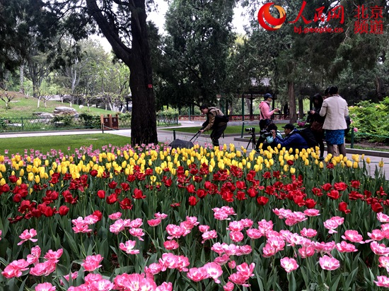 除此之外,中山公園古樹下種植的郁金香,也別具一番風(fēng)味。側(cè)柏是北京的鄉(xiāng)土樹種,生長千年依然繁茂,巍巍嵯峨,樹下一片片、一群群的郁金香風(fēng)姿綽約。古樸與現(xiàn)代,蒼勁與嬌艷,交織融合在一起,對比強(qiáng)烈又和諧自然,形象的展現(xiàn)了中國以海納百川的襟懷,共建“一帶一路”,和世界人民攜手開創(chuàng)美好未來的生動(dòng)畫卷。