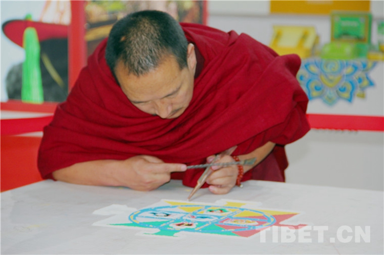 圖為僧人作壇城沙畫 攝影:王茜