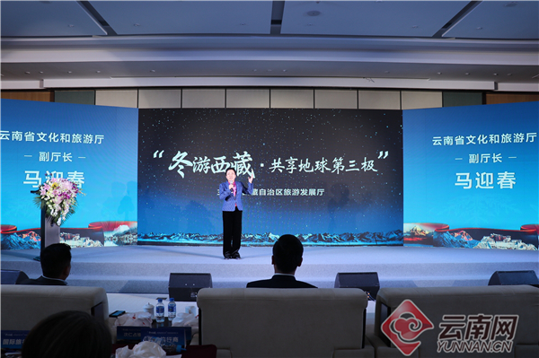 云南省文化和旅游廳副廳長馬迎春出席推介會并致辭,祝福西藏旅游事業(yè)健康快速發(fā)展。