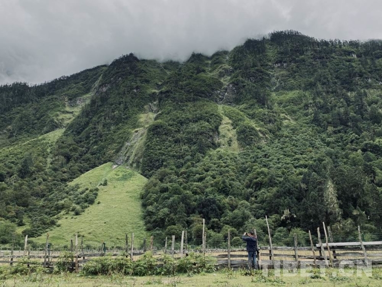 森林邊有一片大大的牧場,我靜靜地躺下來。牧場遠處有牦牛在吃草,聽村民講這是野牦牛,因為這里絕少有人來,它們對人也沒有恐懼。
