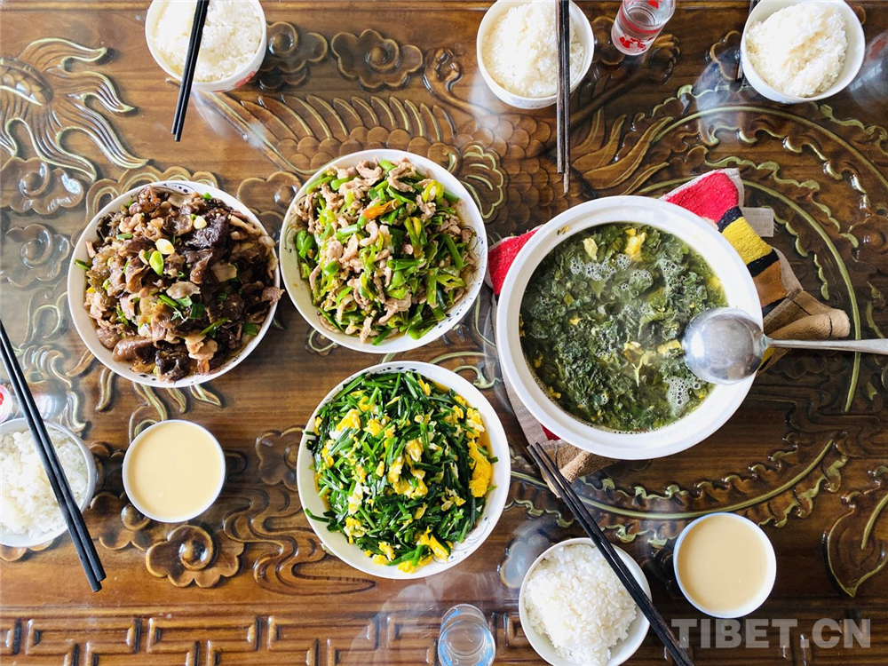 次增做得一手好菜,木耳青椒炒肉、韭菜炒雞蛋,還有蕎麥葉煮蛋湯,家常菜讓人感到非常親切和感動。次增對我們說:“開展生態(tài)宜居示范村建設(shè)后,整個村變化特別大,以前村里的土路高低不平,現(xiàn)在道路平整,路也寬了,給我們帶來了很大的幸福,不是光我一家,我們整個村子家家戶戶都覺得非常滿意?!?/p>
