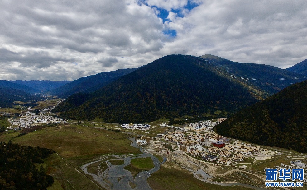鳥(niǎo)瞰魯朗小鎮(zhèn)(10月15日攝,無(wú)人機(jī)照片)。新華網(wǎng) 柑丹鴦琦攝