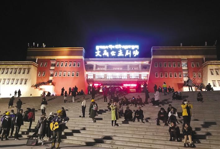 如今,拉薩除了布達(dá)拉宮、大昭寺……文成公主劇場及所在地慈覺林已然成為拉薩必游的又一新的打卡點(diǎn)。傍晚的慈覺林也因?yàn)槲某晒鞫鵁狒[非凡,雖然國慶黃金周已過,但是文成公主劇場前仍人潮涌動,游客、市民在這里欣賞美景、駐足,流浪歌手在這里熱情獻(xiàn)唱,小販的吆喝聲不斷,路邊的店鋪燈火通明,好不熱鬧。(記者 黃志武 見習(xí)記者 格桑央珍 桑吉 楊曦婷 攝)