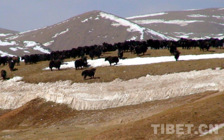這是生活在藏北無人區(qū)雪山上的國(guó)家一級(jí)保護(hù)動(dòng)物野牦牛(唐召明2008年攝)
