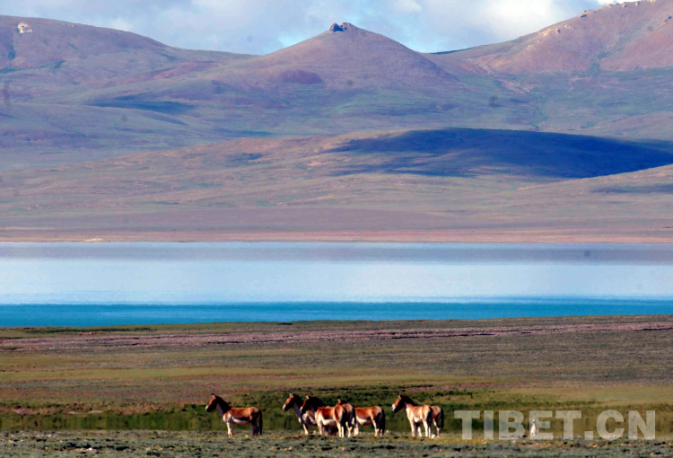 這是在藏北無人區(qū)一湖泊前悠閑生活的國(guó)家一級(jí)保護(hù)動(dòng)物藏野驢(唐召明2009年攝)