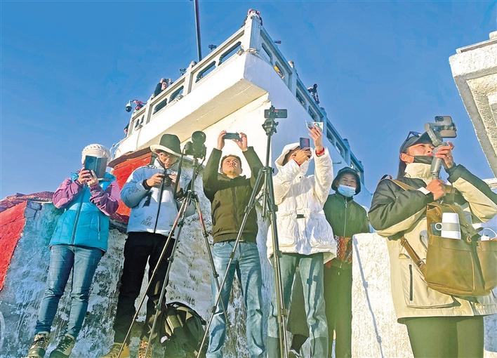 圖為游客在布達(dá)拉宮廣場(chǎng)觀景臺(tái)上拍攝布達(dá)拉宮。 記者 洛桑 攝