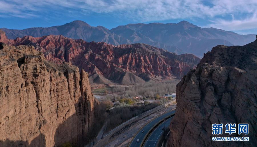 這是11月14日在貴德縣拍攝的丹霞地貌(無人機照片)。新華社記者 吳剛 攝