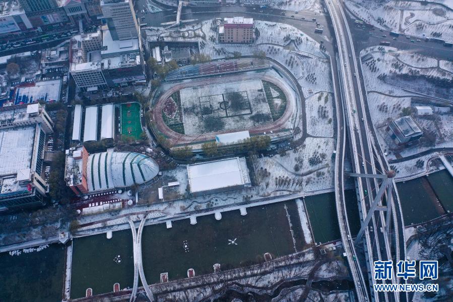 這是11月21日拍攝的西寧雪景(無(wú)人機(jī)照片)。新華社記者 吳剛 攝