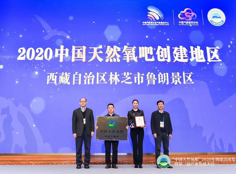 11月24日,由中國氣象服務(wù)協(xié)會(huì)主辦的“中國天然氧吧”2020年創(chuàng)建活動(dòng)發(fā)布會(huì)暨第二屆產(chǎn)業(yè)發(fā)展大會(huì)在云南省紅河州彌勒市舉辦。在當(dāng)天的授牌儀式上,全國共有79個(gè)地區(qū)獲得“中國天然氧吧”稱號(hào)。其中,西藏林芝市魯朗景區(qū)成功入選,成為繼山南市錯(cuò)那縣勒布溝之后,西藏自治區(qū)第二個(gè)獲此稱號(hào)的地區(qū)。