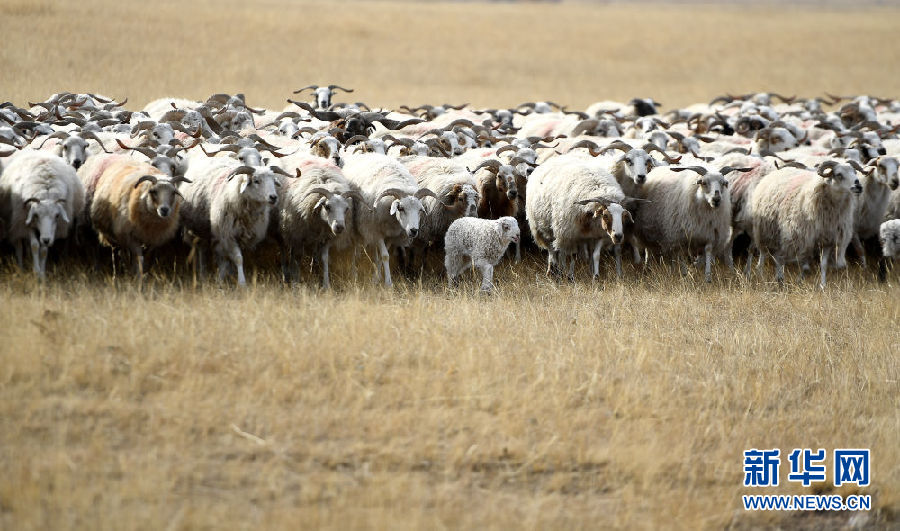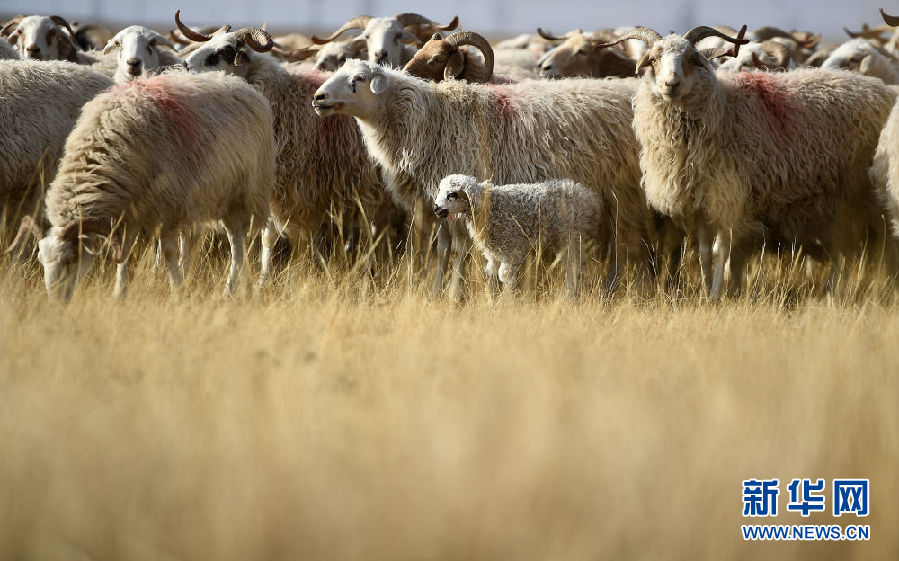 初冬時(shí)節(jié),一場(chǎng)小雪浸潤(rùn)了青海湖北岸的草原,披著薄紗的草原草色金黃,這里成為母羊產(chǎn)羔的大“產(chǎn)房”。