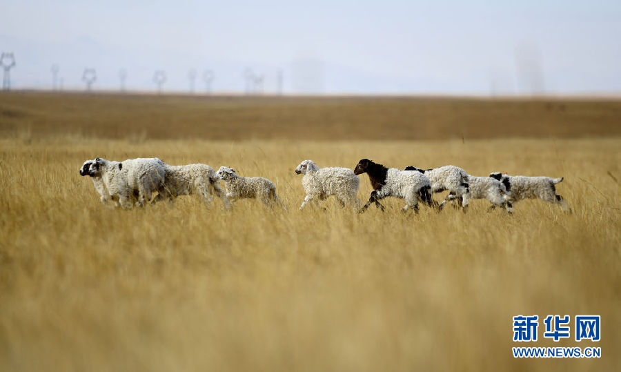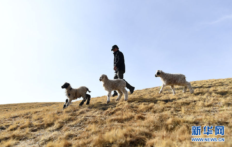 在青海省剛察縣泉吉鄉(xiāng)寧夏村,達(dá)日杰家的小羊羔在草場(chǎng)上(11月12日攝)。新華社記者 張宏祥 攝