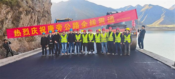 圖為唐旁公路施工人員在公路貫通儀式上留影。 記者 楊小娟 攝