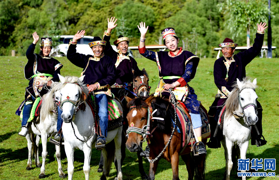 魯朗旅游小鎮(zhèn)農(nóng)牧民向游客招手致意,旅游業(yè)成為當?shù)剞r(nóng)牧民重要收入來源(7月26日攝)。新華社記者 張汝鋒 攝