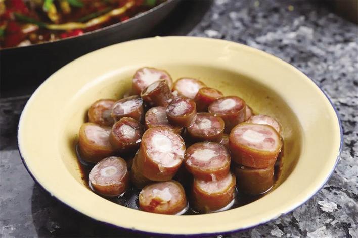 12月9日晚,記者和品鑒團成員們來到外婆怪味雞餐廳。走進店內(nèi),一股懷舊風(fēng)撲面而來——擺滿食材的木架、古式的燈罩、茅草屋、實木桌椅,讓人仿佛置身于農(nóng)家小院。該餐廳就餐區(qū)分為一樓大廳食材展示區(qū)、二樓大廳用餐區(qū)以及包間區(qū),每層樓都各有特色,環(huán)境十分雅致?!胺浅O矚g這家店的裝修風(fēng)格,店里布置的實木亭、老式電視、音箱以及那些高高掛起的腌臘肉都讓我感覺非常親切,也讓我想起了小時候在四川老家生活的時光?!逼疯b團成員李女士說。