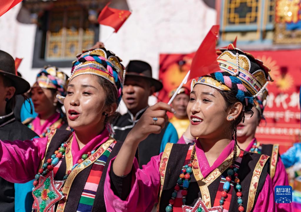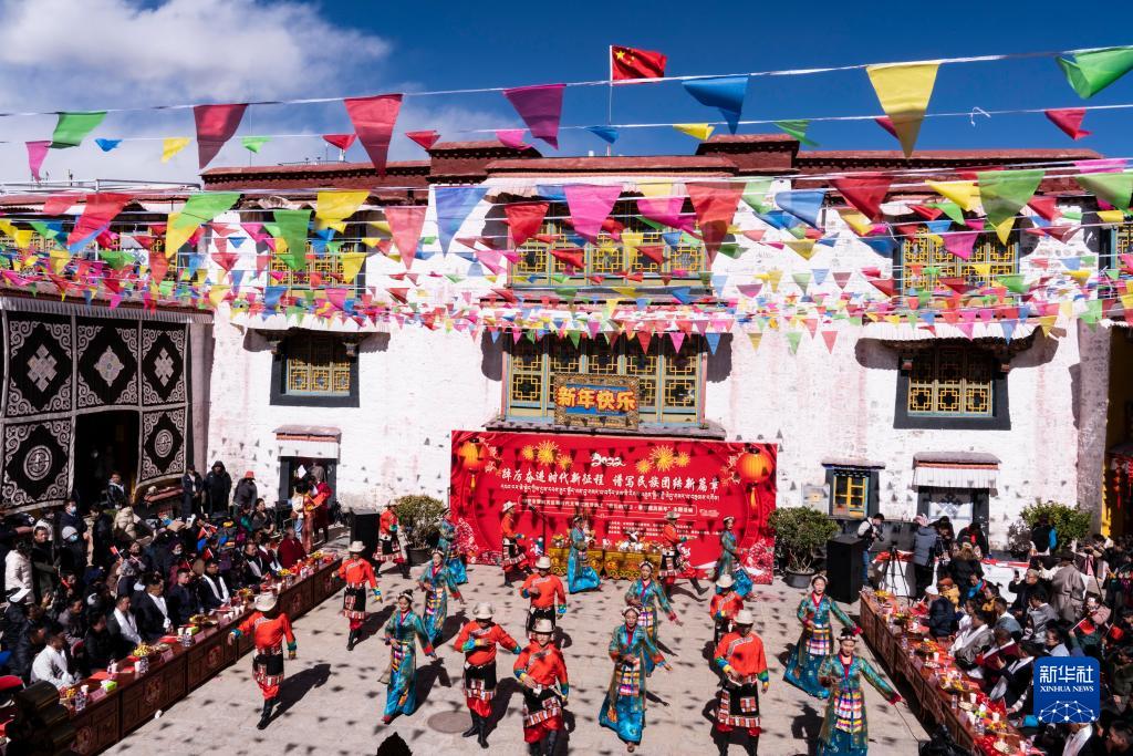 當(dāng)日,西藏拉薩市城關(guān)區(qū)在八廓街老大院夏扎內(nèi)開(kāi)展迎春節(jié)藏歷新年主題活動(dòng),來(lái)自大院附近的多民族居民一起載歌載舞,迎接春節(jié)、藏歷新年。