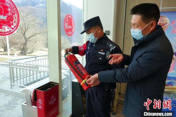 派邊境派出所民警在轄區(qū)內(nèi)酒店檢查消防設(shè)施?!∪轿木?攝