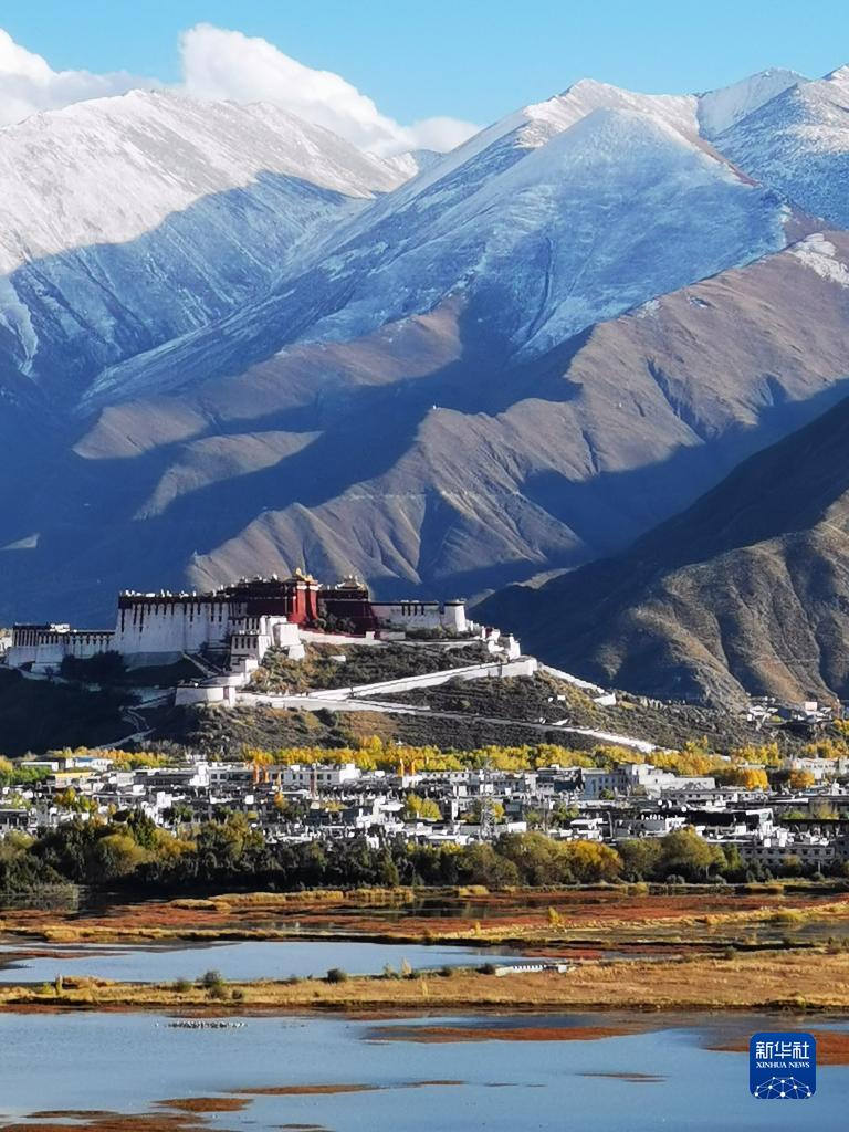 這是從拉魯濕地方向拍攝的布達拉宮(10月29日攝)。新華社記者 沈虹冰 攝