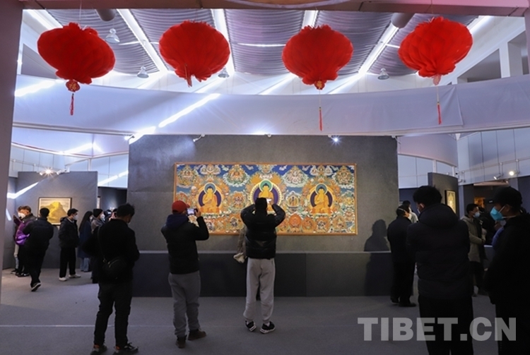 圖為第八屆“見即愿滿”西藏精品唐卡展開幕式現(xiàn)場(chǎng)