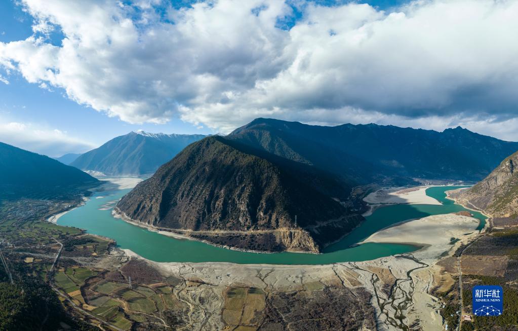 12月18日拍攝的雅魯藏布江米林段風(fēng)光(無人機(jī)拼接照片)。新華社發(fā)(董志雄 攝)