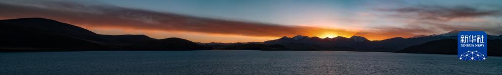 這是夕陽下的羊卓雍錯(拼接照片,1月1日攝)。新華社記者 姜帆 攝