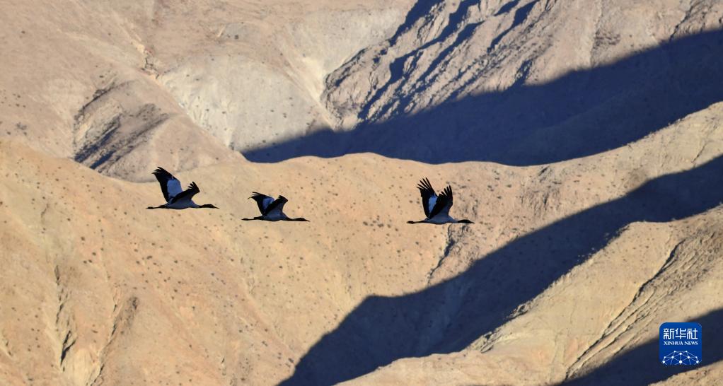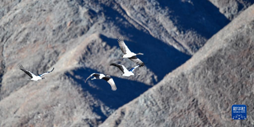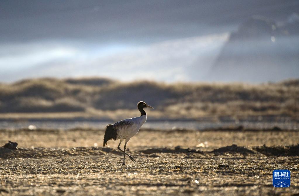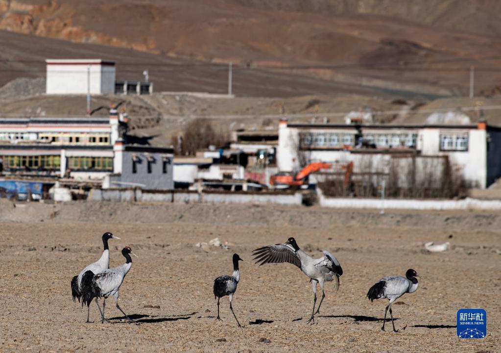 在西藏雅魯藏布江中游河谷黑頸鶴國家級自然保護(hù)區(qū)日喀則市拉孜縣越冬的黑頸鶴(1月19日攝)。新華社記者 晉美多吉 攝