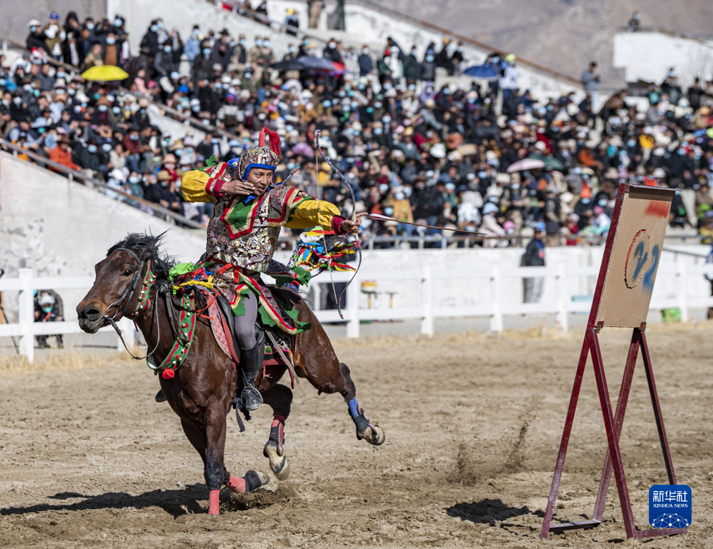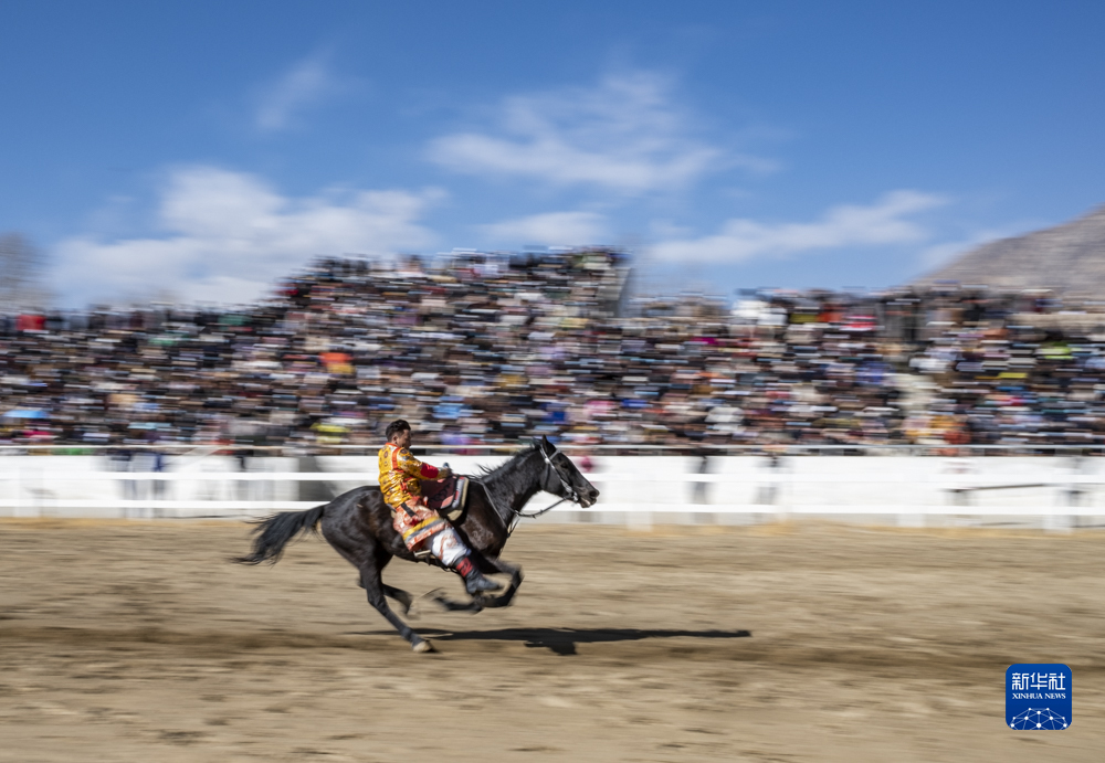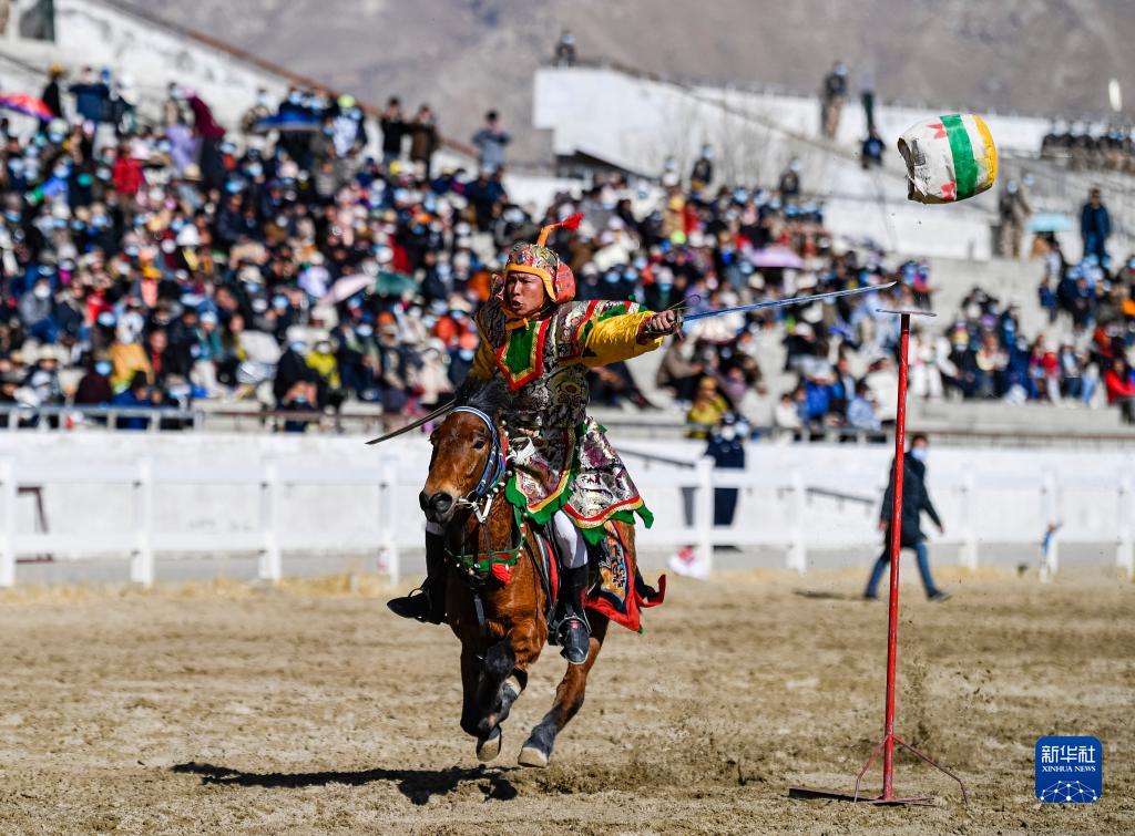 每年藏歷新年初三,在拉薩賽馬場舉辦馬術(shù)表演已成為當(dāng)?shù)貞c祝新年的傳統(tǒng),深受廣大群眾喜愛。騎手們英姿颯爽,為觀眾們帶來騎馬拾哈達(dá)、騎馬射箭等精彩表演。