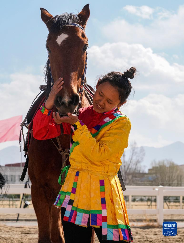 2月23日,騎手在表演前和賽馬互動。新華社發(fā)(丁增尼達(dá) 攝)