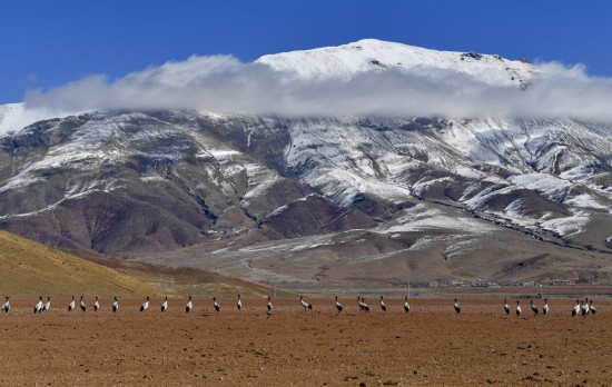 被河水滋潤的青稞田里,三三兩兩的黑頸鶴正悠閑地覓食?;蛟S是因為對環(huán)境的熟悉,生性警惕的黑頸鶴,卻對附近鄉(xiāng)道上經過的汽車熟視無睹,楊樂和同事也因此得以靠近觀察。[詳細] -
