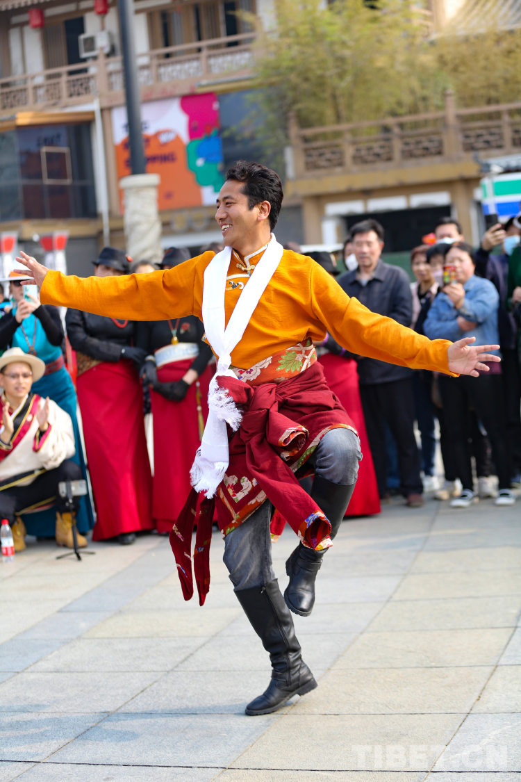 圖為大唐西市活動現(xiàn)場 多杰尼瑪正在領舞 攝影:呂靜