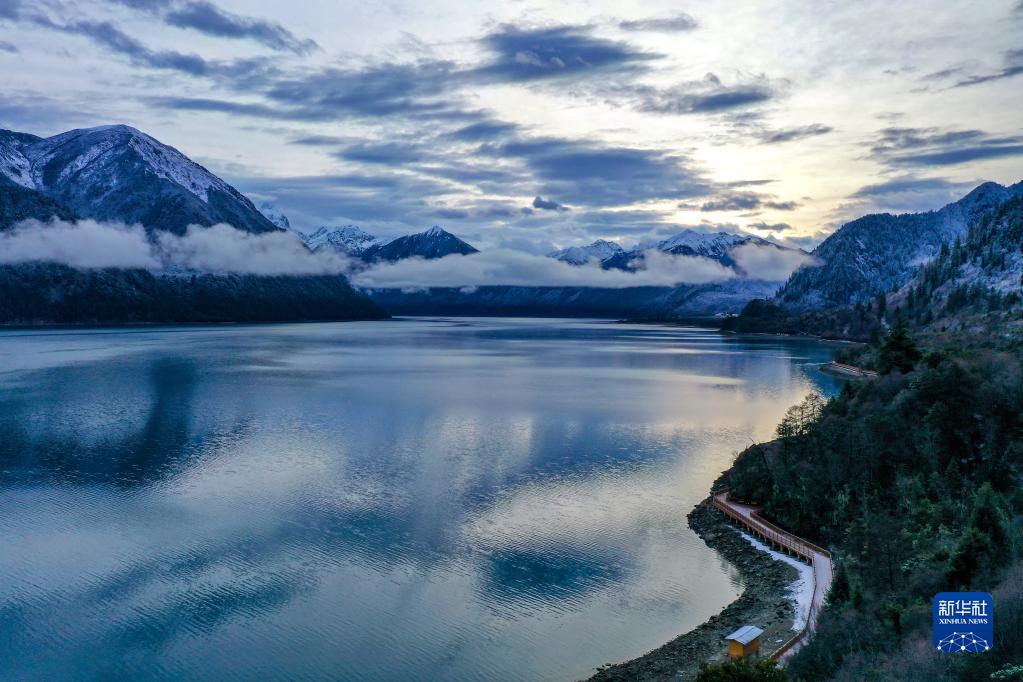這是雪后拍攝的巴松錯(無人機(jī)照片,2023年3月19日攝)。新華社記者姜帆 攝