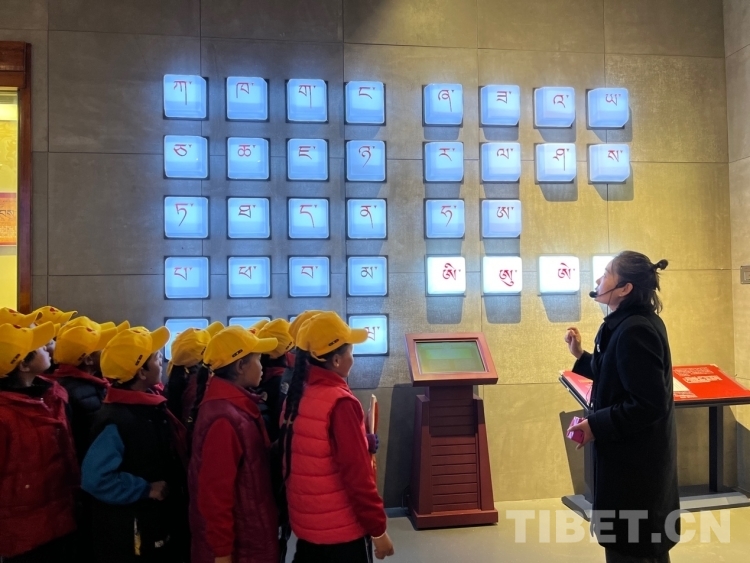 走進“藏地智慧”,學生們一眼認出藏文創(chuàng)始人吞彌·桑布扎,大家異口同聲回答講解員的問題說:“這是吞彌·桑布扎?!钡玫街v解員的肯定、并向他們講述背后的相關歷史后,學生們聽得很入迷,也更有信心面對接下來的問題。藏文的信息化使得這一古老文字煥發(fā)著全新而旺盛的生命力,在這里學生們欣賞藏文在智能手機、電腦、多功能點讀機等智能電子設備內(nèi)“走動”、傳統(tǒng)農(nóng)牧業(yè)的模擬場景和現(xiàn)代化的機械設備圖、藏醫(yī)藥材、藏香藏紙制造和制鹽過程等獨具特色的藏族傳統(tǒng)手工藝,也能很好的回答講解員提出的問題,現(xiàn)場互動氣氛熱烈。“這種活動我們學校不會常有,當孩子們聽到要去拉薩時像是要過年那樣高興,一路上問這問那地充滿好奇?!倍喟奏l(xiāng)小學的帶隊老師羅珍介紹:“這次參加活動的這些學生都是三、四、五年級的學生,個個品學兼優(yōu)。”