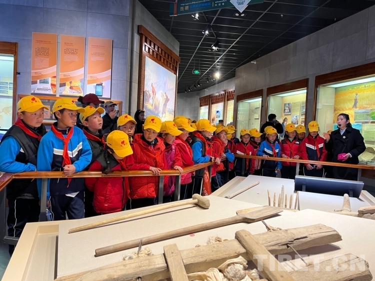 圖為學生們在參觀農(nóng)事用具 攝影:德吉卓瑪