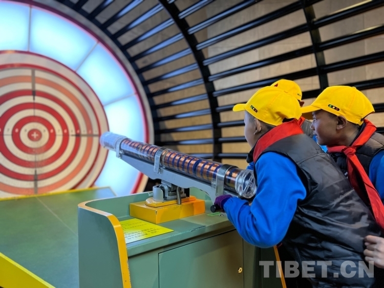 在講解員的帶領下學生們來到科技館,這里包括藏地智慧、科技樂園、科技前沿、體驗世界屋脊等4個主題展區(qū),主要展示古老的西藏科技智慧、人類取得的科技成就及基礎科學知識、科技促進人類的發(fā)展及西藏的開發(fā)建設、西藏高原生存環(huán)境的內(nèi)容。