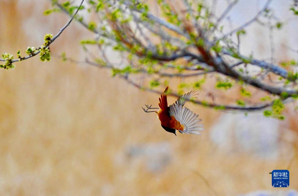 小鳥(niǎo)在拉薩河畔飛舞(4月16日攝)。新華社記者 張汝鋒 攝
