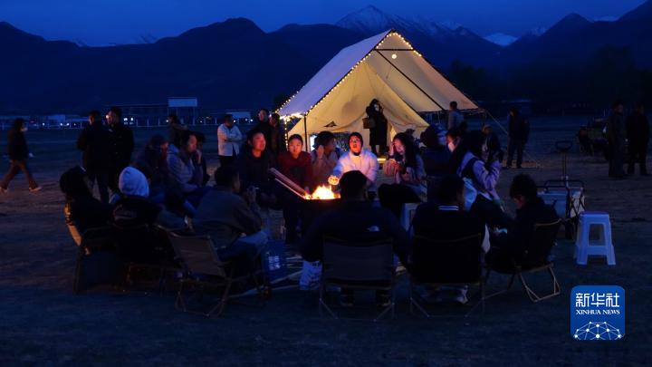 駿馬飛馳、星空露營;咖啡飄香、篝火晚會;樂隊演唱、鍋莊起舞……4月27日,晚風(fēng)徐徐的拉薩河畔,西藏拉薩達孜區(qū)首屆露營林卡節(jié)吸引了數(shù)百名來自本地和外地的游客,現(xiàn)場歡聲笑語、氣氛熱烈。