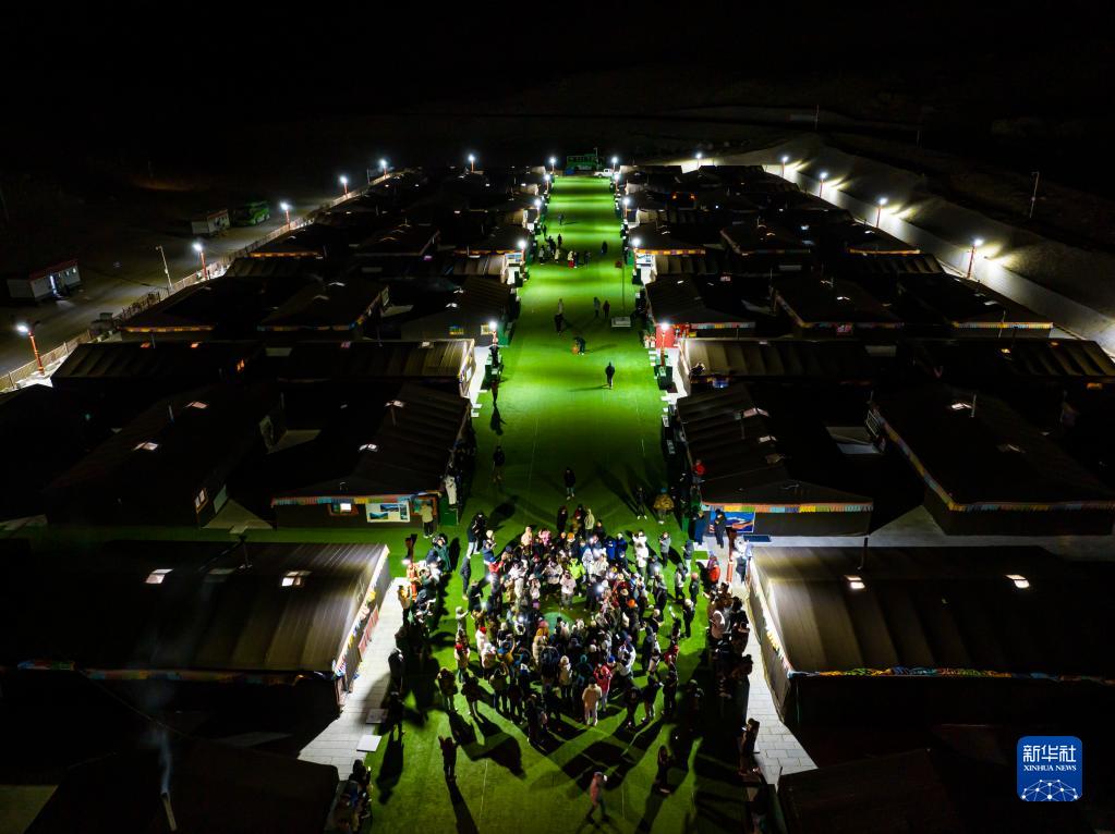這是夜晚的珠峰游客大本營帳篷旅館(5月16日攝,無人機照片)。新華社記者 孫非 攝