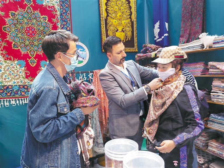 尼泊爾木碗、伊朗波斯地毯、巴基斯坦玉石……在2號館的國際精品展區(qū),每一個國家的展臺前都擠滿了熱情的市民?!耙恢倍己芟矚g伊朗的地毯,這次終于買到了,在藏博會買更便宜,真的很開心?!崩_居民扎西告訴記者。