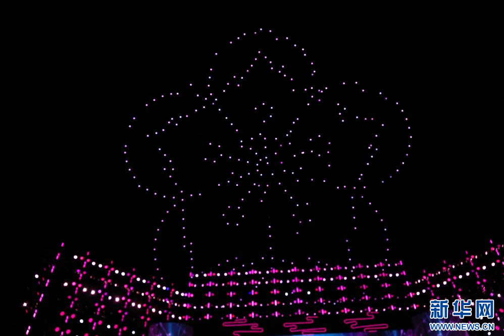 3月31日,開(kāi)幕式上的無(wú)人機(jī)表演。新華網(wǎng)發(fā) 李騰 攝